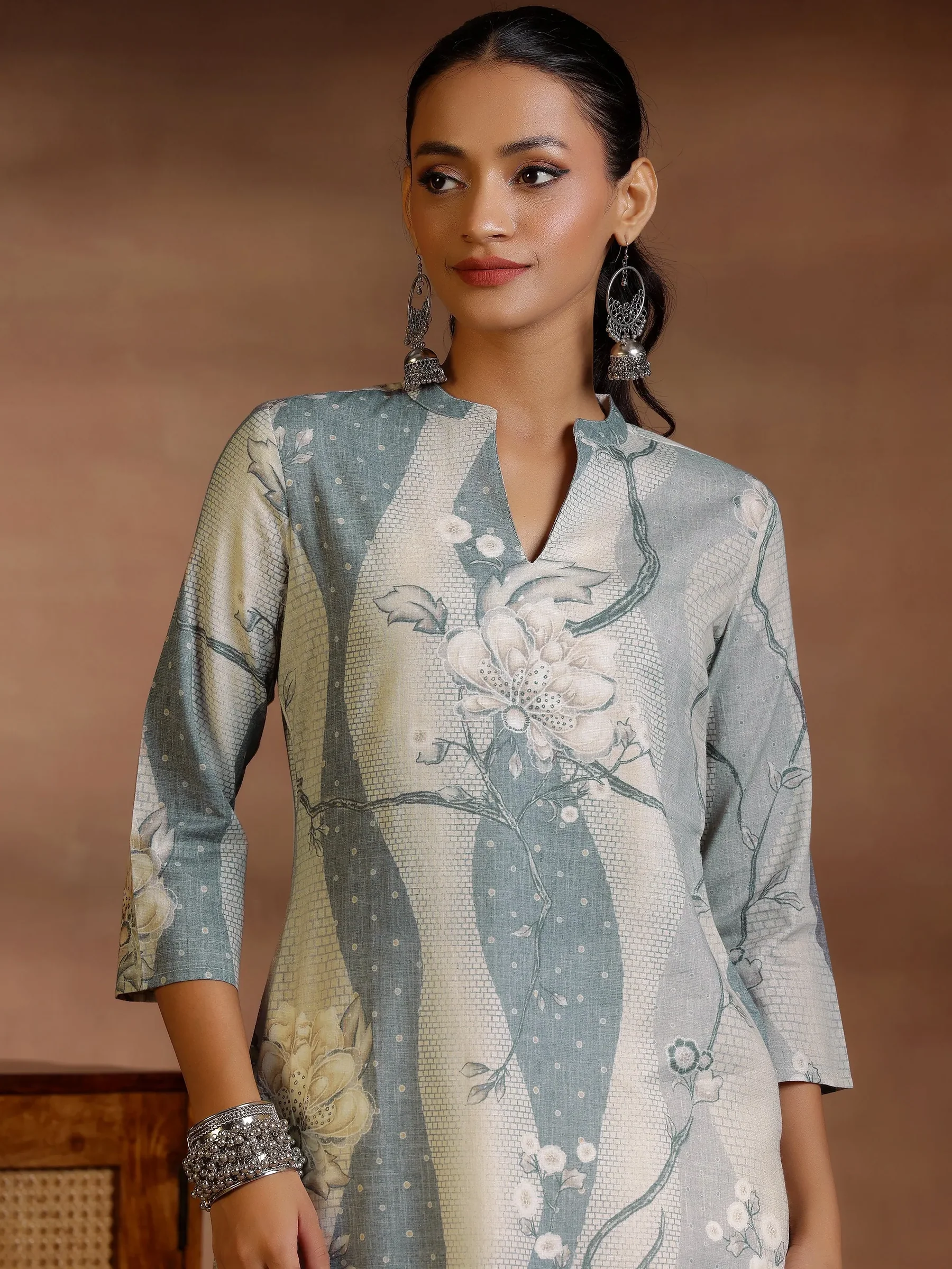 - Neck: Mandarin Collar