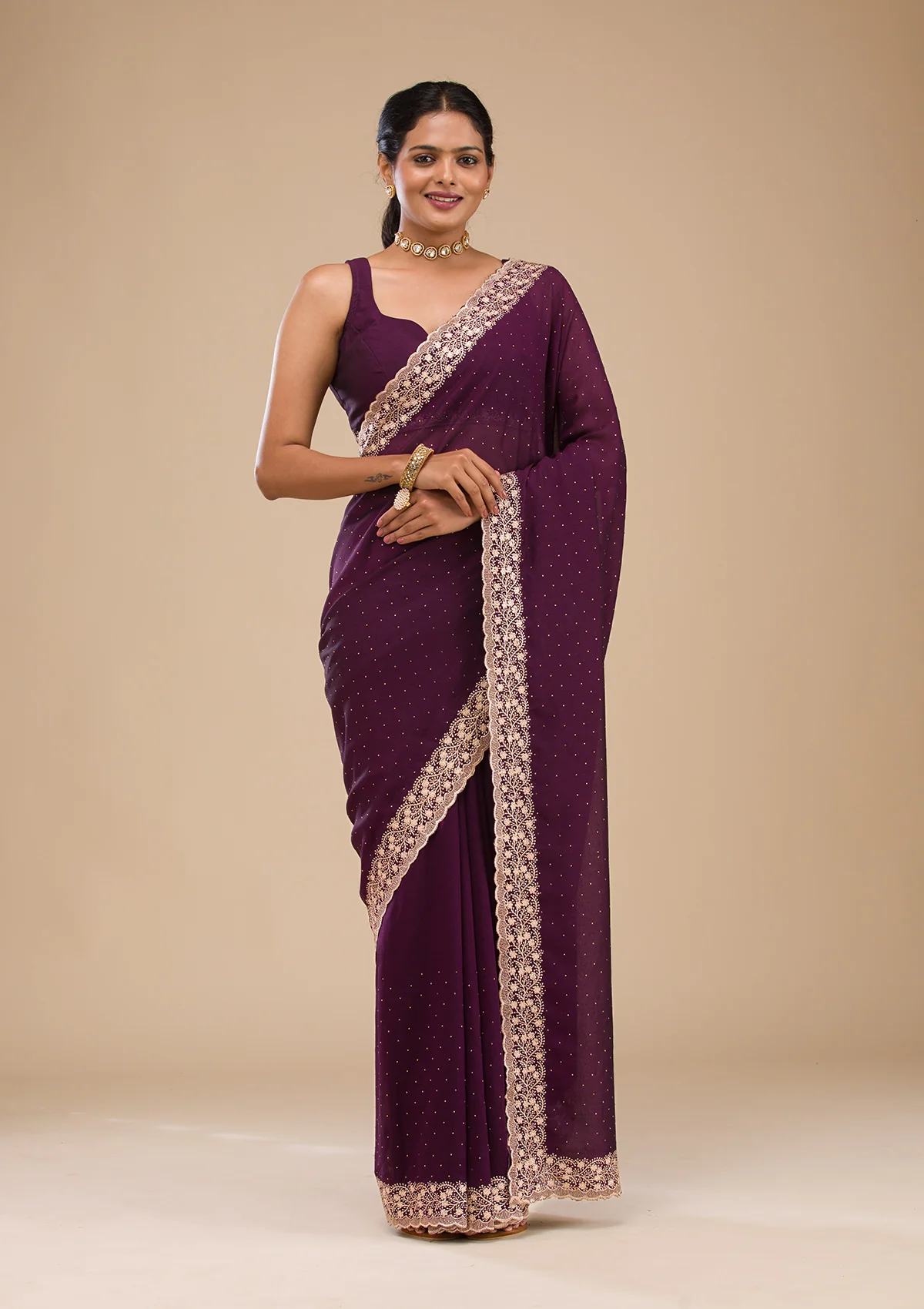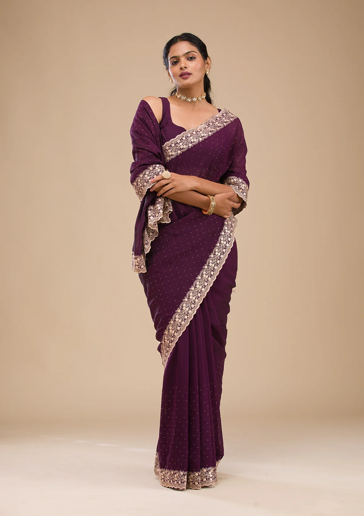 Purple Zariwork Soft Silk Saree