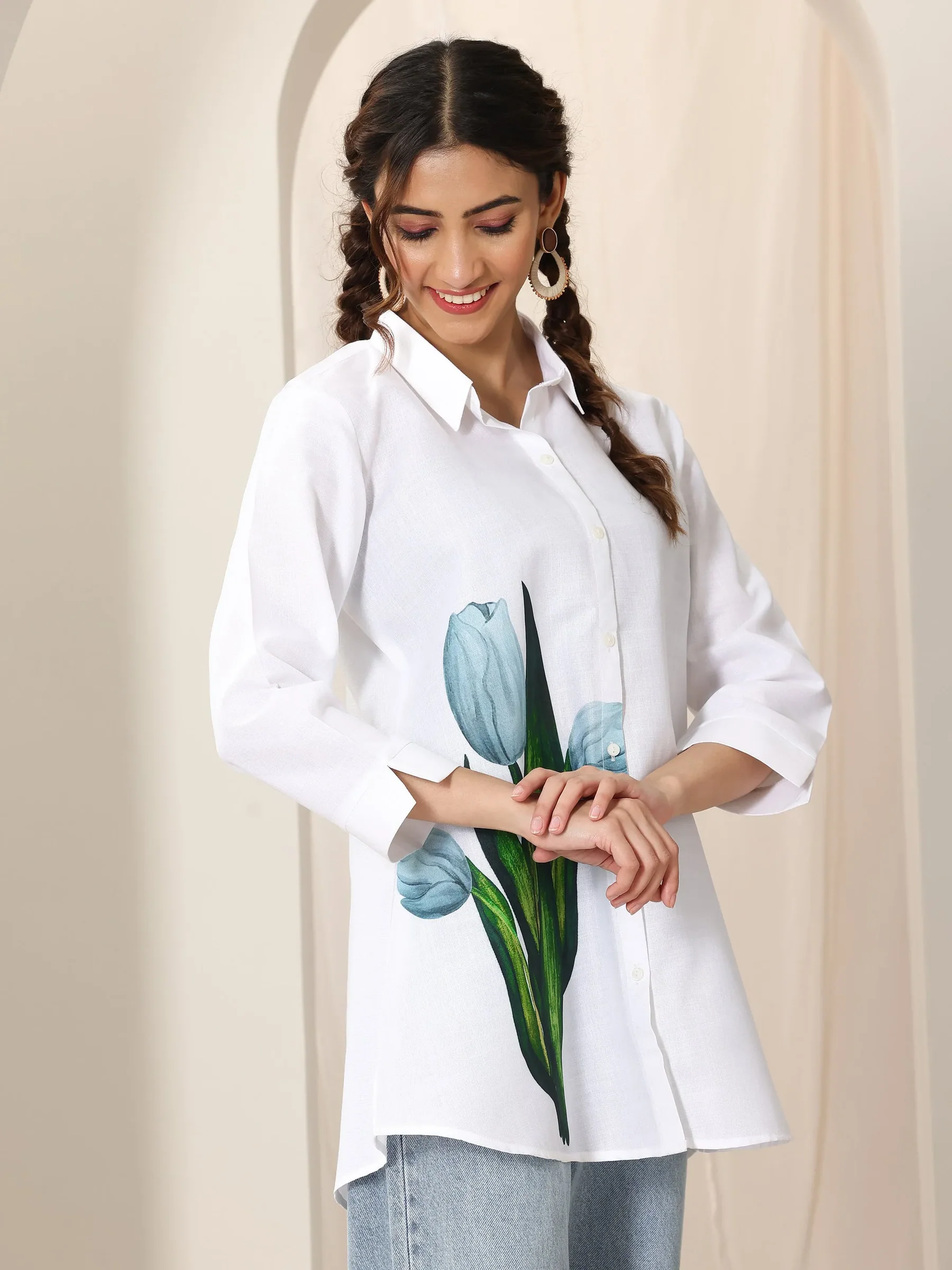 White Cotton Blend Straight Short Kurti