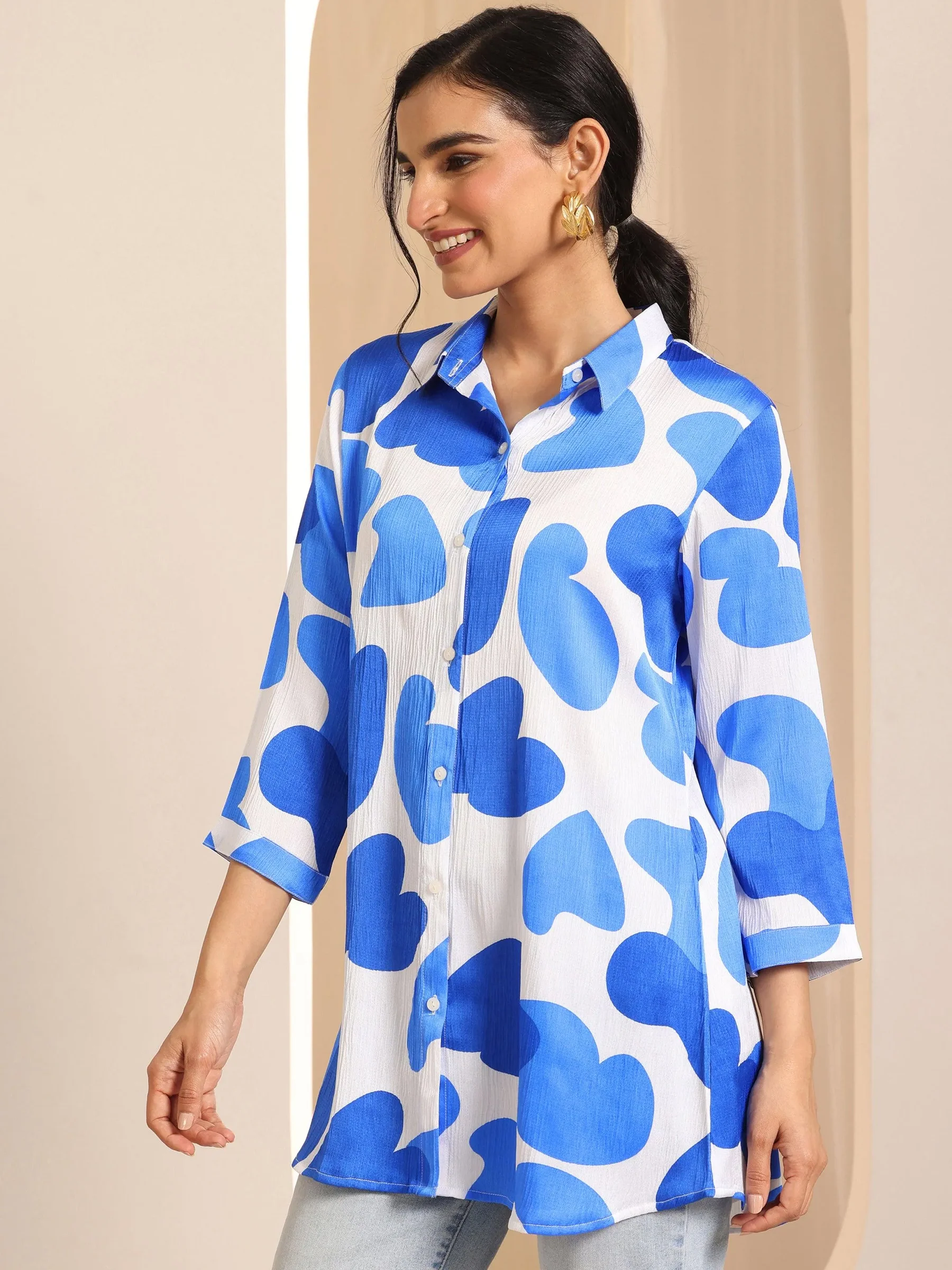 White Printed Silk Blend Straight Tunic