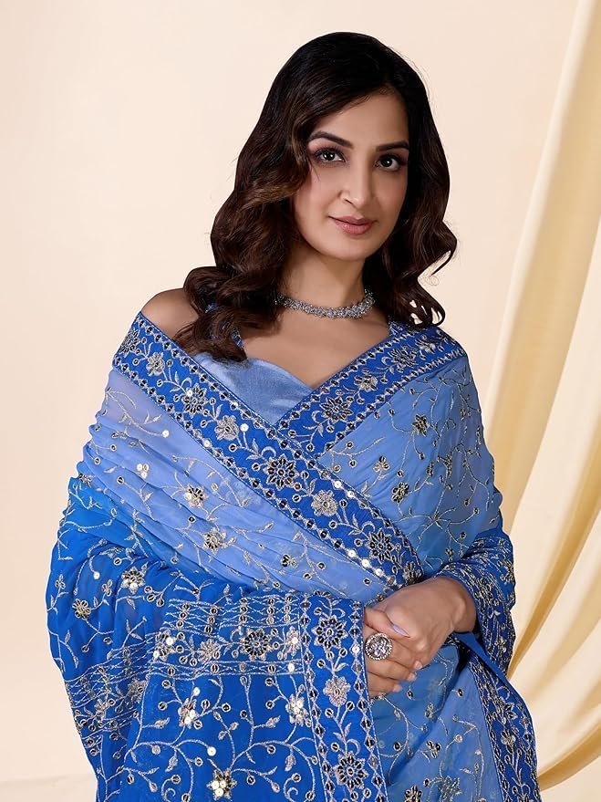 Women’s Georgette Sequin Embroidery work Saree with Unstitch Blouse Piece