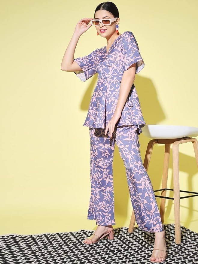 Women’s Top with Pant Botnical Printed Co-ord Set